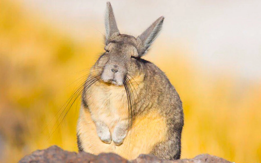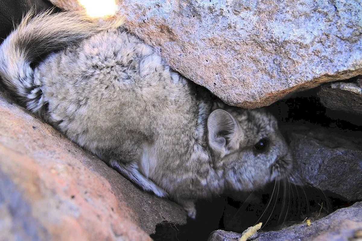 Горные шиншиллы совсем не похожи на искусственно выращенных домашних милашек. Чаще смахивают на зайца. И давно прознали, как обезвредить неприятеля, вооружившись интересной защитной реакцией :)